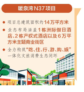 暖泉湾N37项目是山西转型综改示范区重点引进打造的高端文旅项目,2022年被列为山西省重点工程。该项目总建筑面积约14万平方米,总投资额约13亿元,业态布局涵盖1栋洲际假日酒店、2栋产权式酒店以及6万平方米主题商业街区。