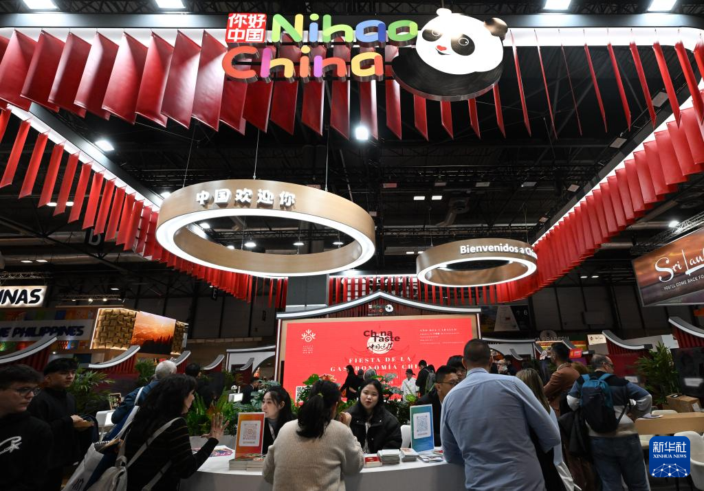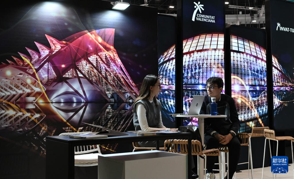 这是1月21日在西班牙马德里拍摄的中国展台。