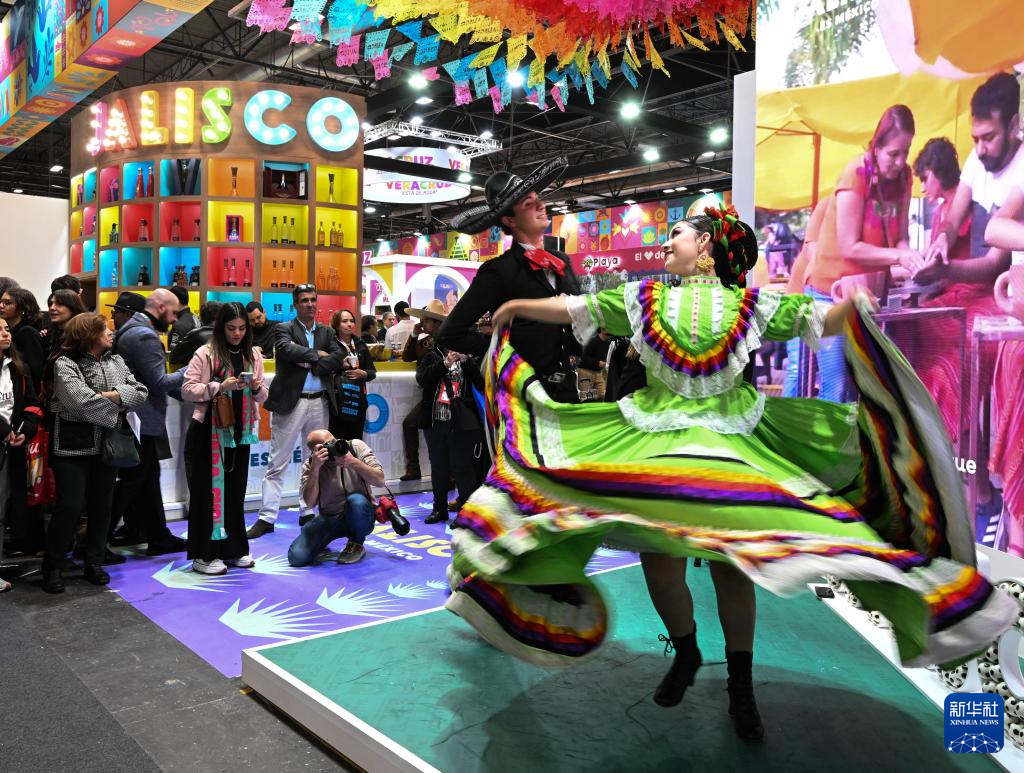 1月21日,在西班牙马德里,演员在旅游展上表演墨西哥传统舞蹈。墨西哥是本届展会的官方合作国家,期间将重点展示其多元化旅游资源、文化遗产和可持续发展成果。