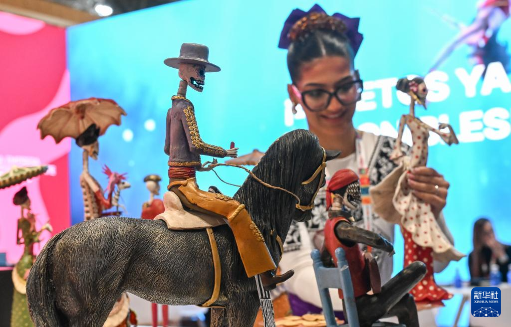 这是1月21日在西班牙马德里拍摄的墨西哥展台上的传统手工艺品。墨西哥是本届展会的官方合作国家,期间将重点展示其多元化旅游资源、文化遗产和可持续发展成果。