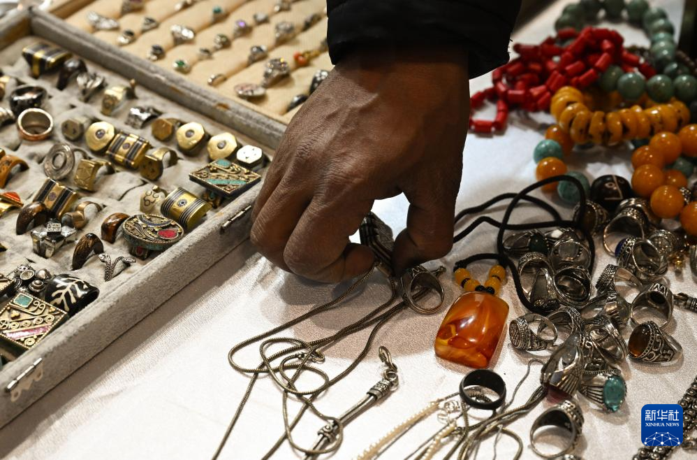 这是1月21日在西班牙马德里拍摄的毛里塔尼亚展台展示的工艺品。