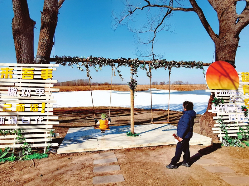 午后,阳光渐暖,城市阳台码头渐渐热闹起来。游客们或凭栏远眺,将湖光山色尽收眼底;或结伴合影,将笑容与美景一同定格。辽阔的漳泽湖延展如海,岸边冰雪向湖心蔓延,在数十米外形成一条天然冰带,将湖面分割开来,冰带之外仍是波光流动的湖水,构成一道独特的冰湖景观。“我们刚在神农湖大桥那边拍了照,特别美!”00后杨萱萱陪同西安而来的同学专程驱车到此,对这里的壮丽风光赞不绝口,“漳泽湖现在是我招待外地朋友的必打卡地,即使是冬天,景色也很美,一点不输春夏。”