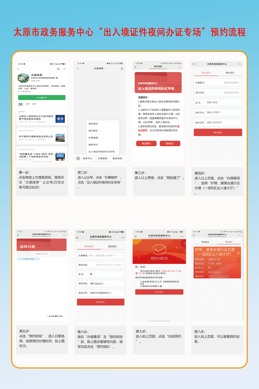 ▲“出入境证件夜间办证专场”预约流程