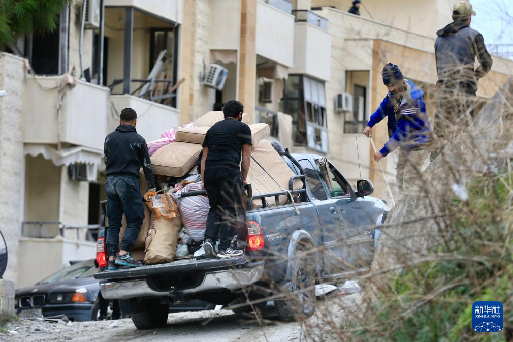 1月22日,在黎巴嫩南部盖纳里特镇,当地居民用车辆转移财物。