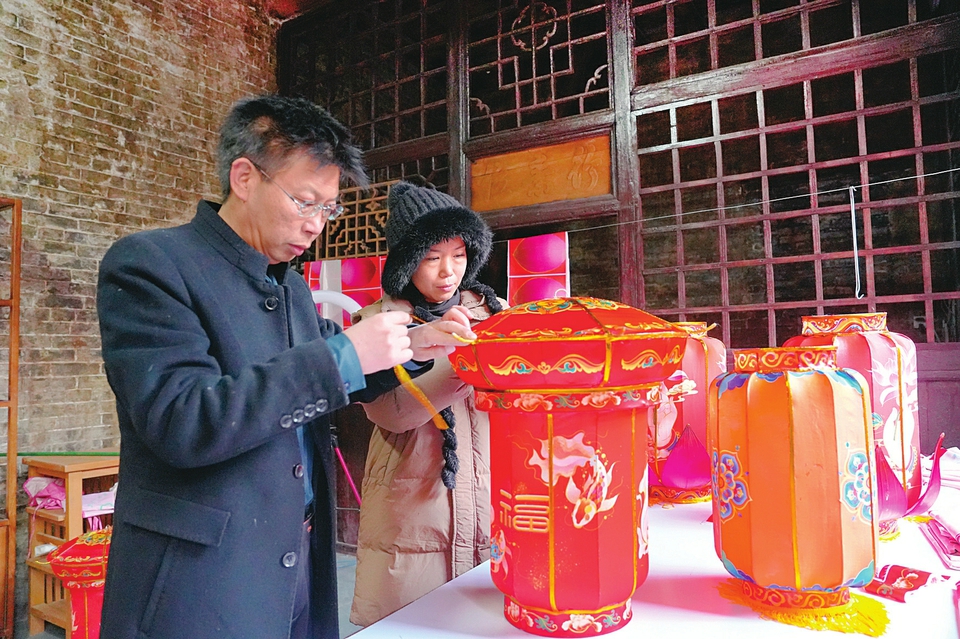 在泽州县高都镇文创艺术坊,手艺人正为传统花灯融入科技巧思。 本报通讯员摄