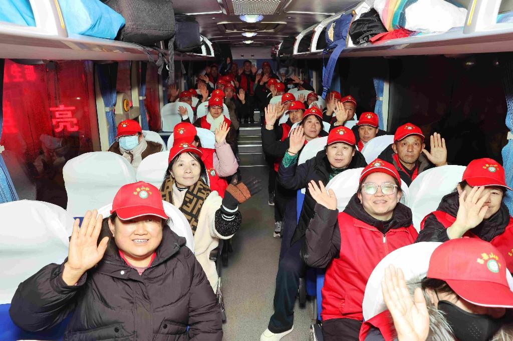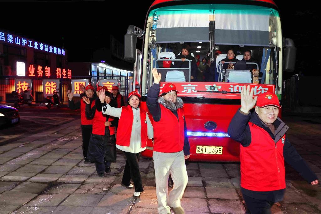 ▲2026年首批“吕梁山护工”乘坐专车前往北京