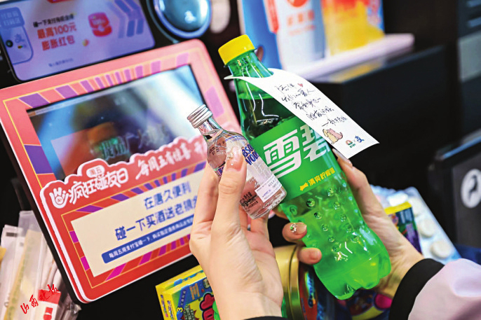 据了解,“便利店音乐角”由支付宝联手唐久便利共同打造。当日,在太原开唱的老狼,受支付宝的邀请,写下“陪伴我们的爱人,常和身边的朋友问好”的金句,和歌迷隔空互动。1月23日、24日,来自太原的上百名老狼的资深歌迷,汇聚在音乐角并发起歌友会,从00后到60后,他们打卡留言、合唱老狼经典歌曲。有的歌迷用支付宝碰一下付款买酒,还免费获得一瓶雪碧和印有老狼手写金句的定制瓶挂,点燃和“青春碰一杯”的气氛。
