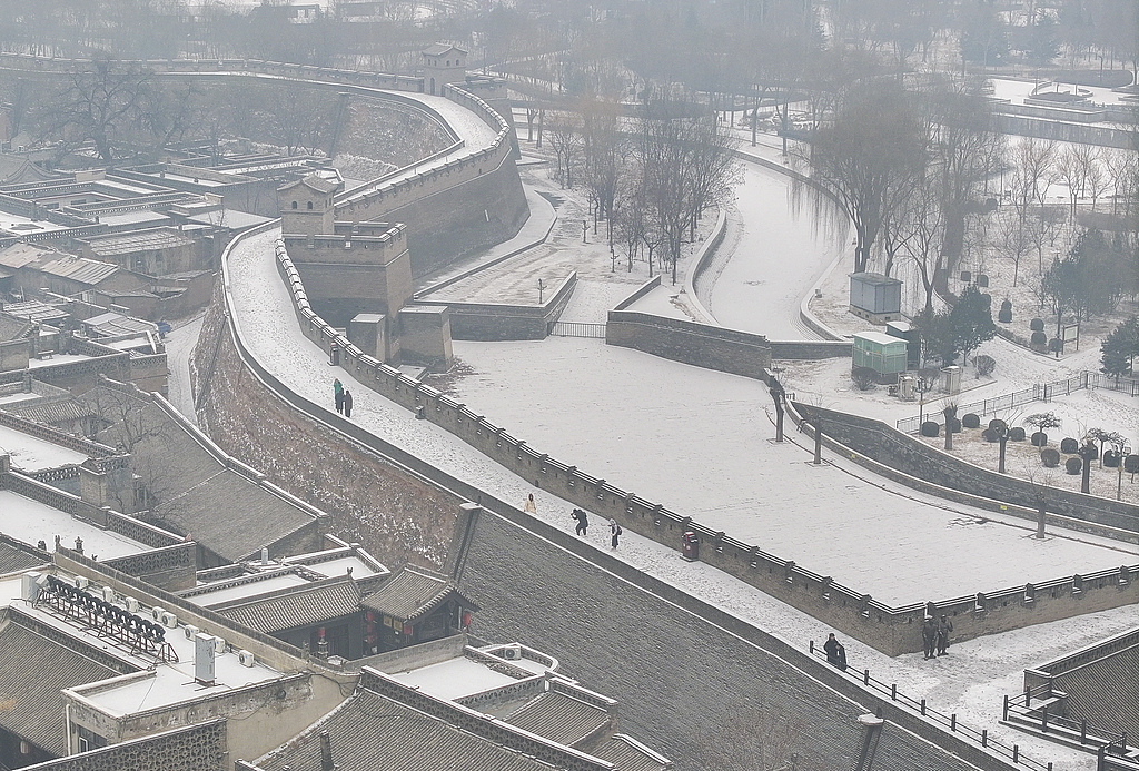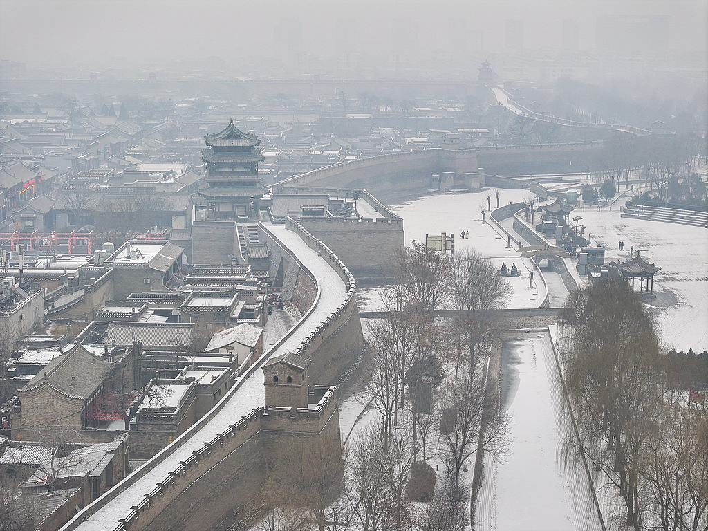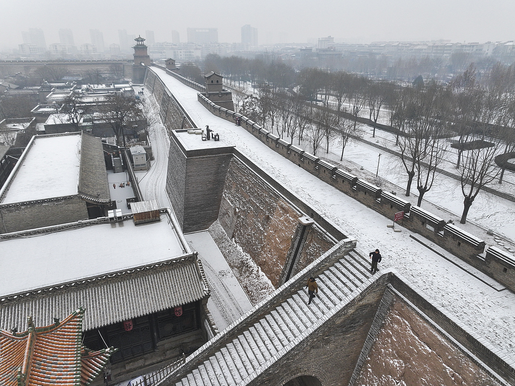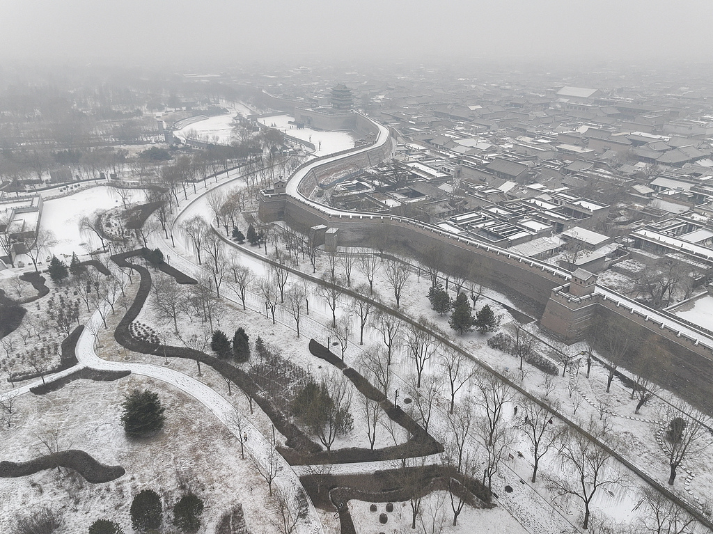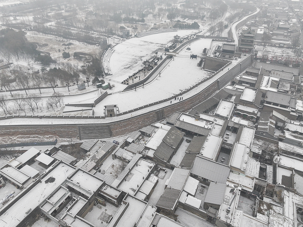 2026年1月26日,受冷空气影响,山西省晋中市平遥县迎来降雪,雪中的平遥古城银装素裹,宛若一幅水墨画卷。视觉中国