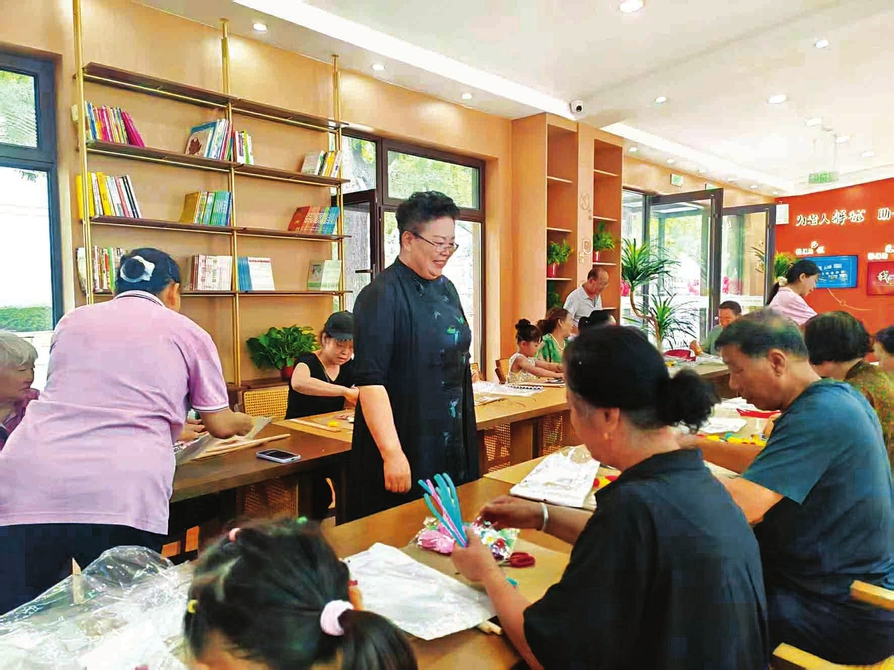 在华晟·咱家智慧社区居家养老服务中心,老人们正围坐在一起参与手工活动。(资料图)