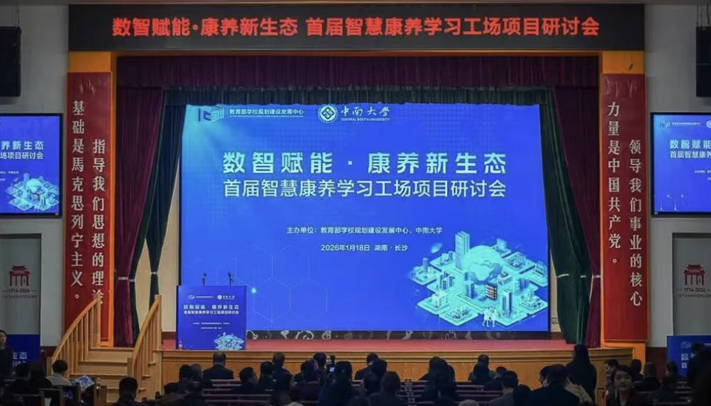 2026年1月18日,由教育部学校规划建设发展中心(以下简称“规建中心”)、中南大学联合主办的“数智赋能·智慧康养新生态——首届智慧康养学习工场项目研讨会”在中南大学举行。美亚特医受邀参加本次会议,公司董事长贾志丹博士在会上进行“智慧康养学习工场”项目签约并作报告。