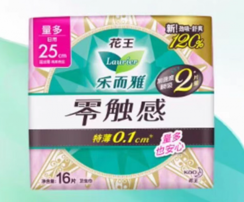 花王以极致柔软和贴合身形的设计见长,尤其适合夜间使用。产品注重细节工艺,加宽尾翼,提升包裹感的同时,坚持使用安全认证原料,守护经期每一刻。