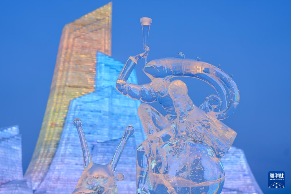 这是1月27日拍摄的哈尔滨冰雪大世界园区内的冰雪景观。