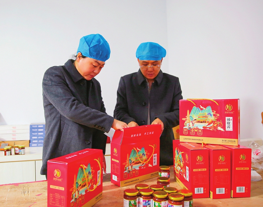 1月26日,位于方山县马坊镇马坊村的山西老传统红辣椒制品有限公司迎来销售旺季。该公司集辣椒种植、研发、加工、销售于一体,年生产辣椒酱超500吨,为当地提供70余个就业岗位,有效促进了群众家门口就业。图为工人们正忙着包装辣椒酱,准备发往各地。