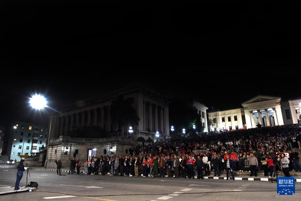 1月27日,在古巴首都哈瓦那,人们手举火把,聚集在哈瓦那大学进行传统火把游行。