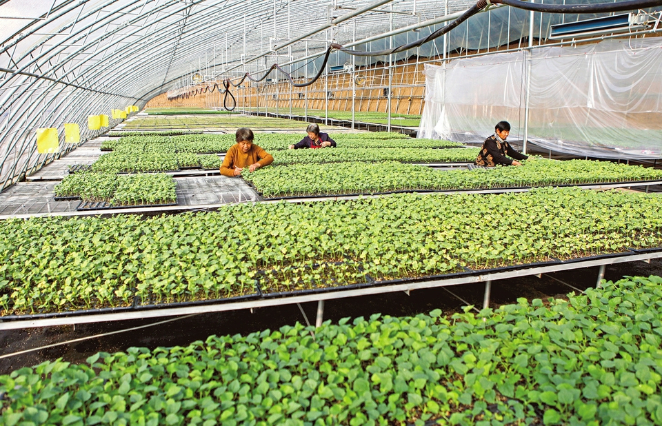 1月28日,襄汾县古城镇北街村一处蔬菜育苗基地内,村民正在培育蔬菜幼苗。目前,该基地蔬菜育苗面积1万平方米,年产苗种600万株,带动周边千余农户发展蔬菜特色种植。