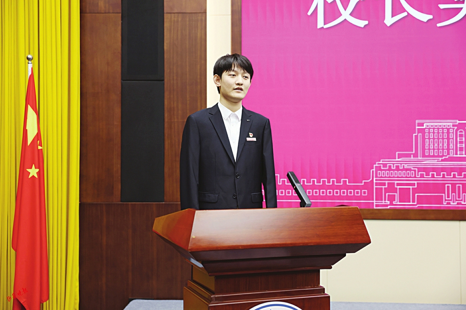 “这份荣誉既是对我过往努力的肯定,更是一份沉甸甸的责任。”站在领奖台上,王海港的话语朴实而坚定。他回顾了自己的成长与奋斗历程,特别感谢了学校的悉心培养、导师的精准指引、同学们的无私帮助。他承诺,未来将继续深耕量子信息领域,践行“求实、创新”的校训精神,以更扎实的科研成果报效祖国,同时愿以自身经历为蓝本,激励更多同学勇敢直面人生挑战。