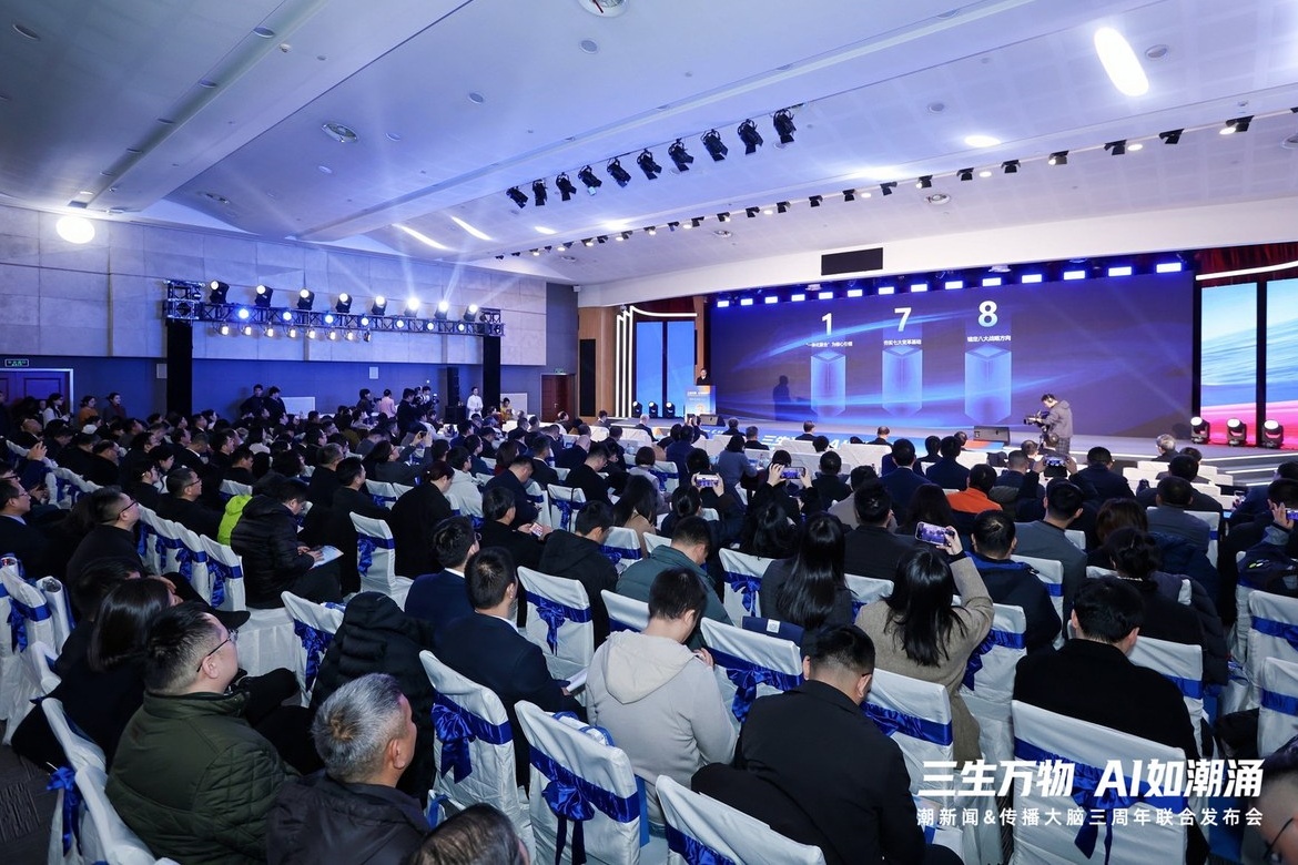 ▲“三生万物 AI如潮涌”潮新闻&传播大脑三周年联合发布会现场