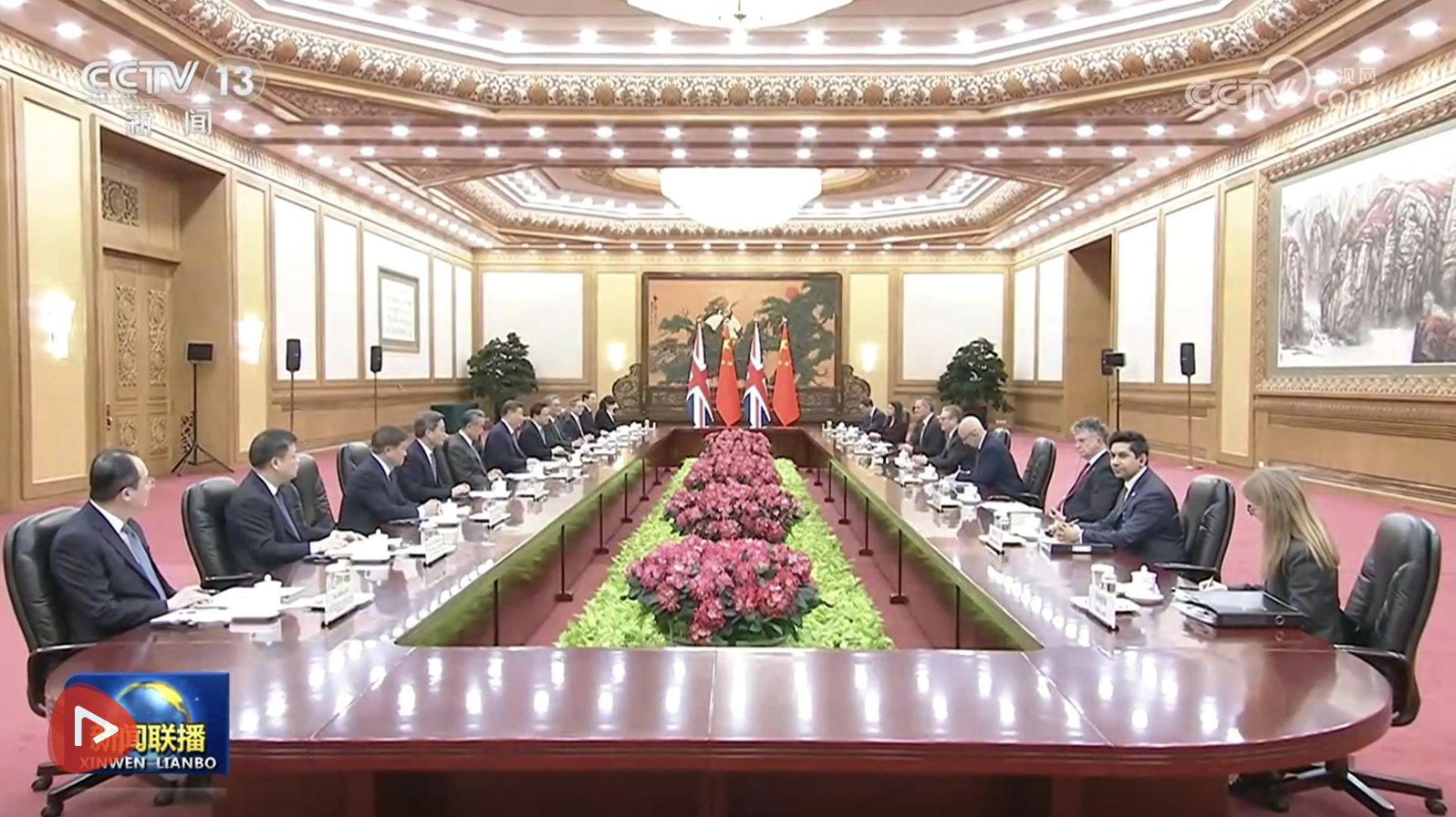习近平指出,当前国际局势变乱交织,中英作为联合国安理会常任理事国和世界主要经济体,无论是维护世界和平稳定,还是促进两国经济民生,都需要加强对话和合作。中方愿同英方秉持大历史观,超越分歧、相互尊重,把中英合作“大有可为”的潜力转化成“大有作为”的实绩,为中英关系与合作开新局,既造福两国人民,也惠及世界。