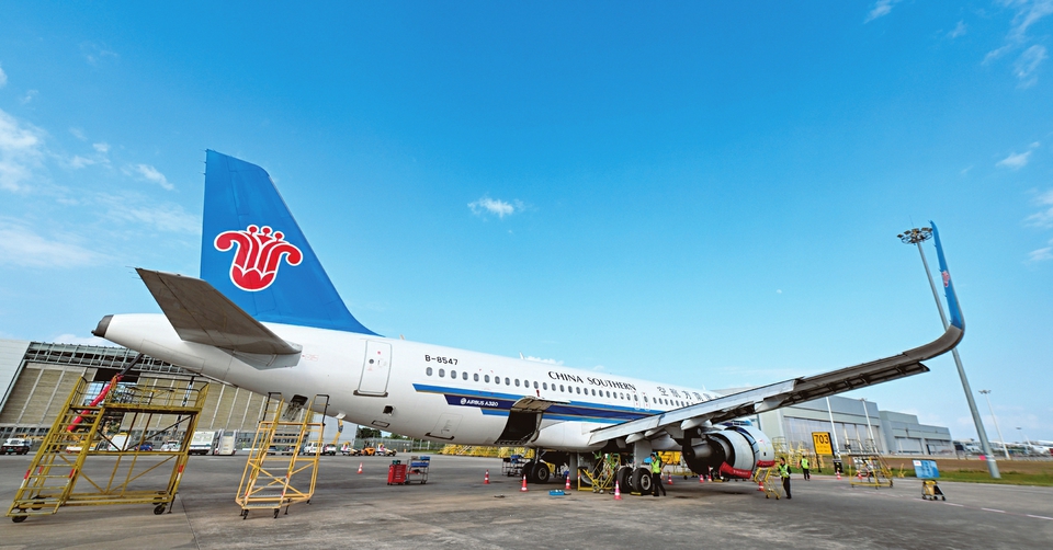 春运将至,各地运输部门组织力量,加强检修检查,保障旅客出行安全。 图1为1月29日,海口美兰国际机场停机坪上,南航工程技术分公司机务工程师在对飞机进行深度检查。图2为1月29日,昆明车辆段昆明西客车技术整备所内,工作人员在进行春运整备作业。图3为1月29日,中国铁路南宁局集团有限公司的接触网工在对南盘江铁路大桥桥梁钢柱上的腕臂底座进行检查。