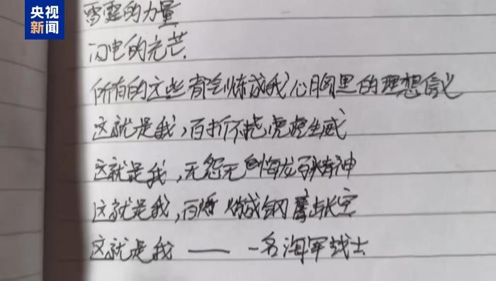 翻开金城龙的笔记本,可以看到首页上写着:“无名无利无悔,有情有义有祖国”“要到基层建功立业,把青春的热血与汗水洒到祖国最需要的地方”……