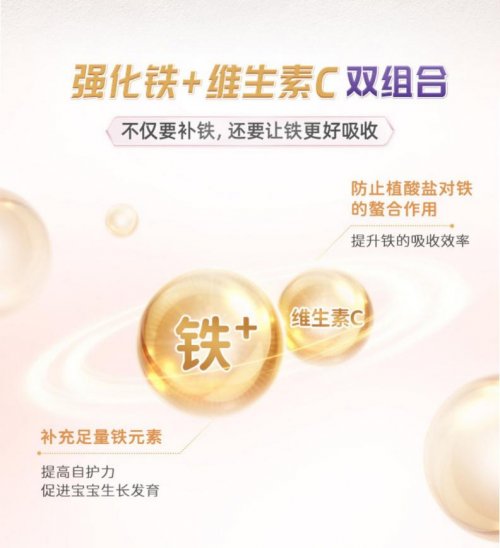 宝宝满6月龄后,从母体中获取的铁储备会逐渐消耗殆尽,及时补铁是辅食的核心营养需求。若不能及时补充,不仅易引发缺铁性贫血,还会影响宝宝智力发育与免疫力提升。纽康特米萃特别采用了强化铁+维生素C的黄金搭配:足量添加铁元素,满足敏宝每日生长发育所需,有效预防缺铁性贫血;维生素C大幅提升铁的吸收效率,确保补充的铁能够被宝宝的肠道吸收利用,告别“无效补铁”。