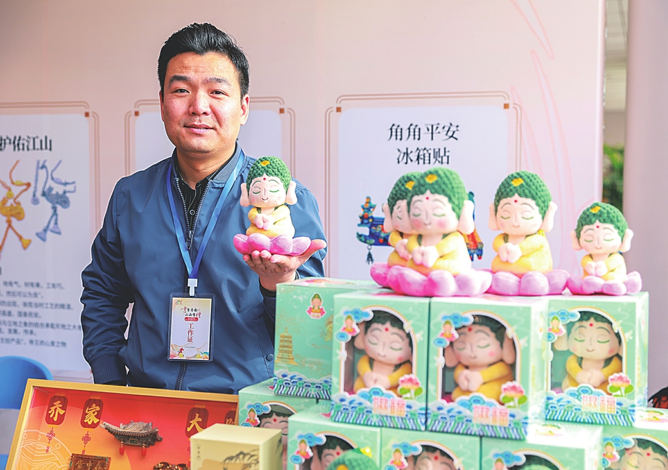 山西成龙文化传媒公司IP主理人展示小西佛文创产品。本报记者王昕摄