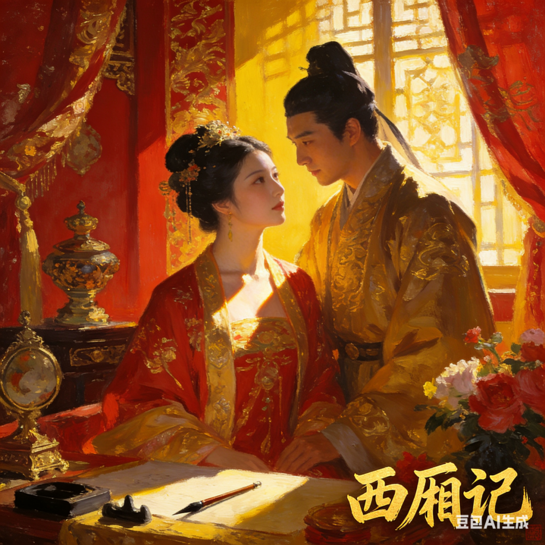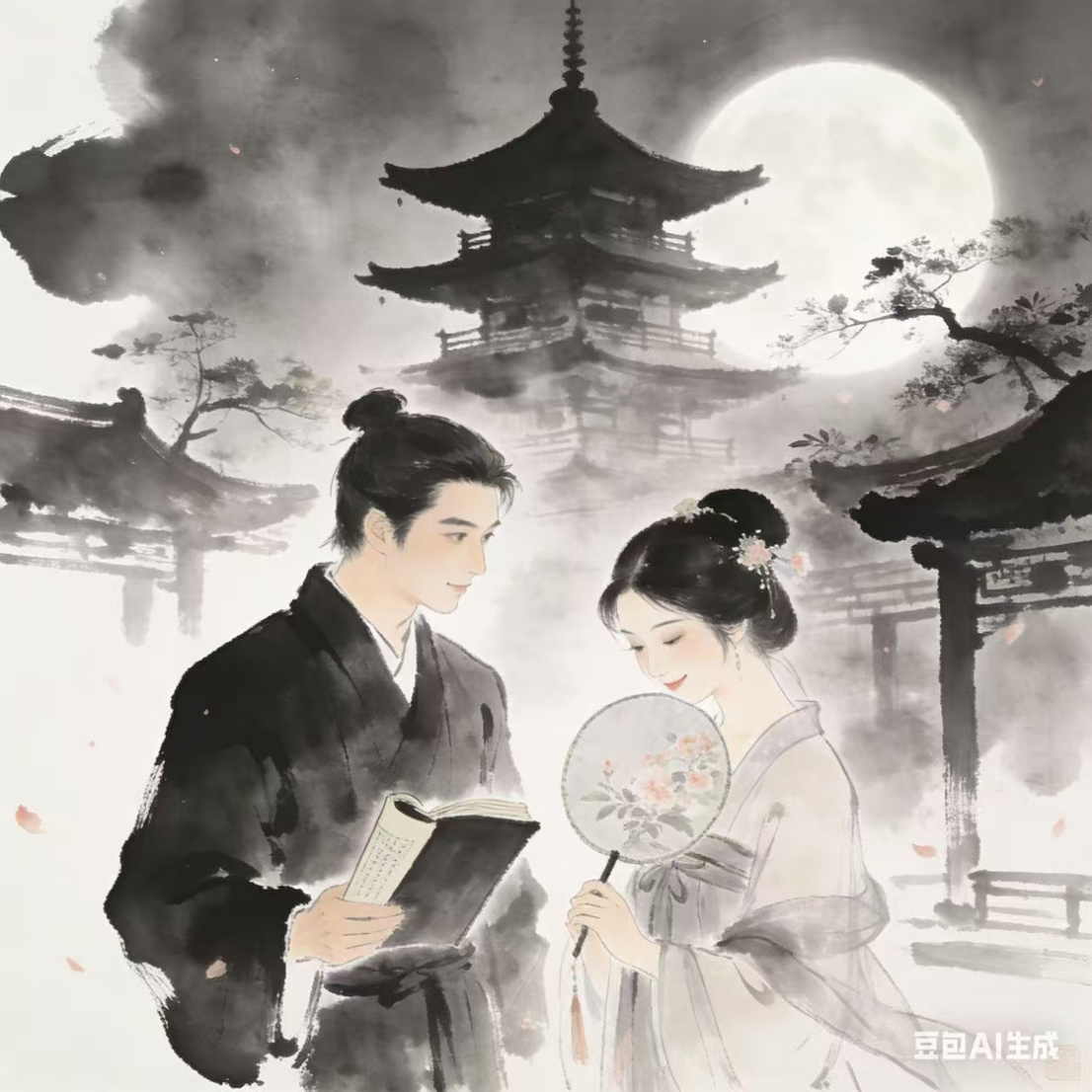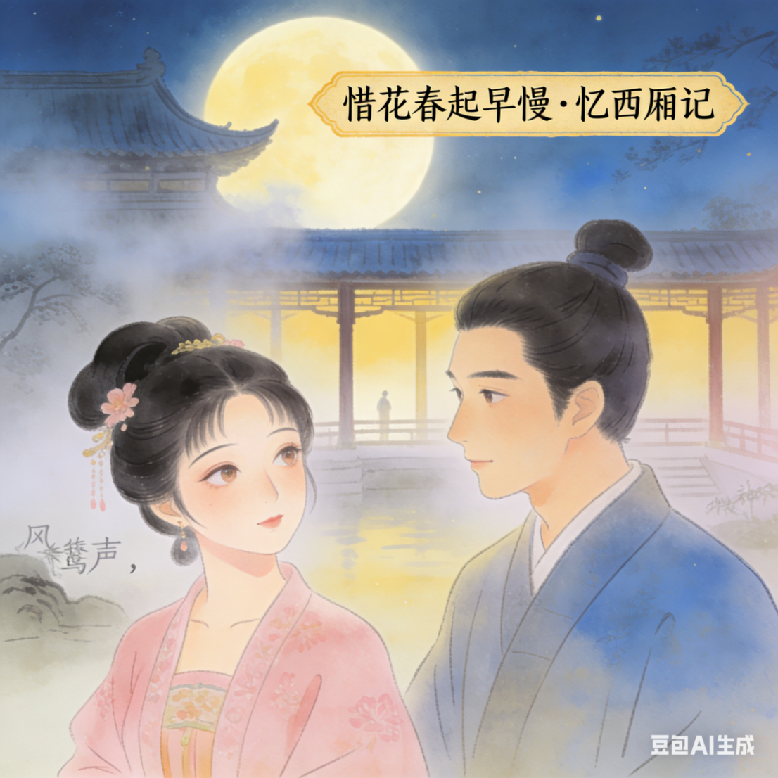 有了精彩的词作,雷·西厢工作室并没有就此止步。他们借助豆包 AI 系列插图,为这些词作增添了更加直观、生动的视觉效果。首先面世的画册,就像一本精美的时光宝盒,将《西厢记》的故事和词作中的情感以图文并茂的形式呈现出来。翻开画册,每一幅插图都与词作相得益彰,让人仿佛置身于那个充满诗意和浪漫的古代爱情世界。