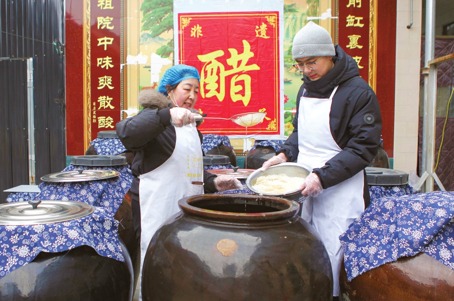 1月27日,襄汾县山西永昌源醋业开发有限公司内,工人正在生产小米醋系列产品,全力保障春节市场供应。