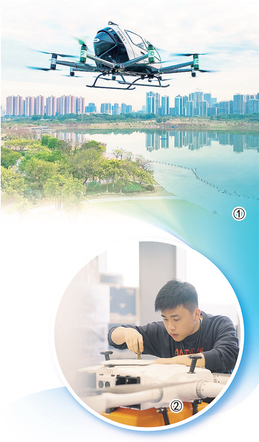 图①:亿航智能技术有限公司在广东广州黄埔区开展飞行活动。