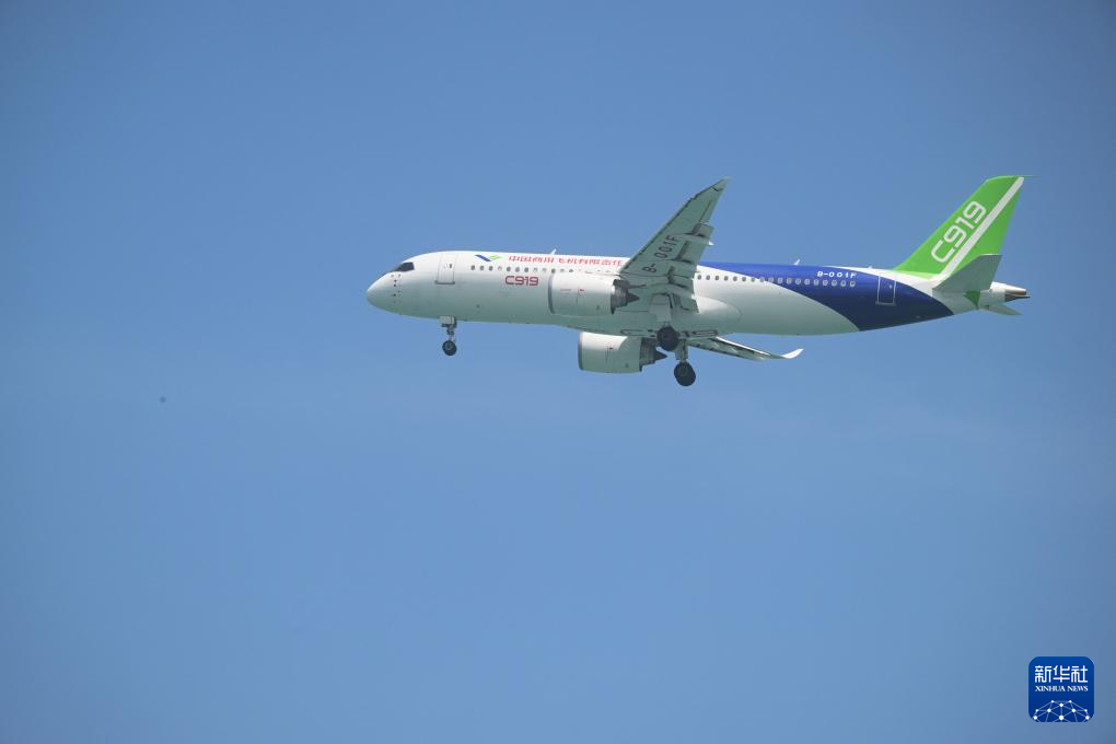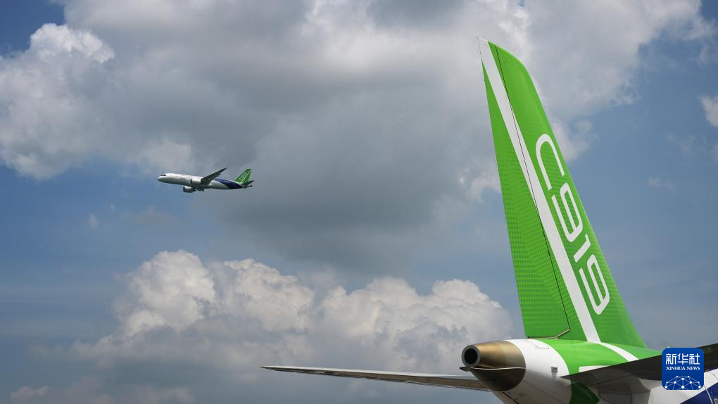 2月3日,一架中国商飞C919飞机在第十届新加坡航展首日进行飞行表演。