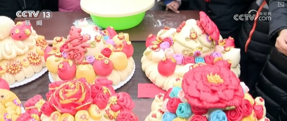 各种造型的馒头、花糕、花山让人眼花缭乱,特别这里的开花馒头凭借天然果蔬染色、造型饱满、讨喜,订单量一路攀升。