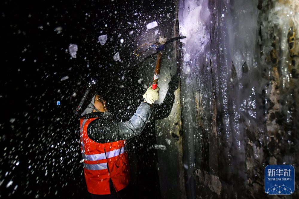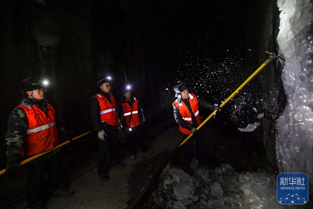 冬日,太行山深处昼夜温差显著,铁路隧道容易出现渗水结冰现象,威胁运输安全,“打冰人”成为列车和乘客安全的守护者。
