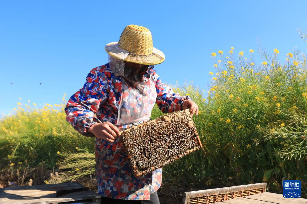 2月4日,养蜂专业户在云南省腾冲市明光镇凤凰村养蜂场查看蜂箱。