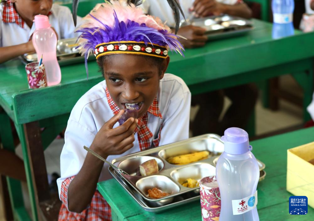 2月4日,印度尼西亚巴布亚省首府查亚普拉一所小学的学生享用营养午餐。新华社记者 叶平凡 摄