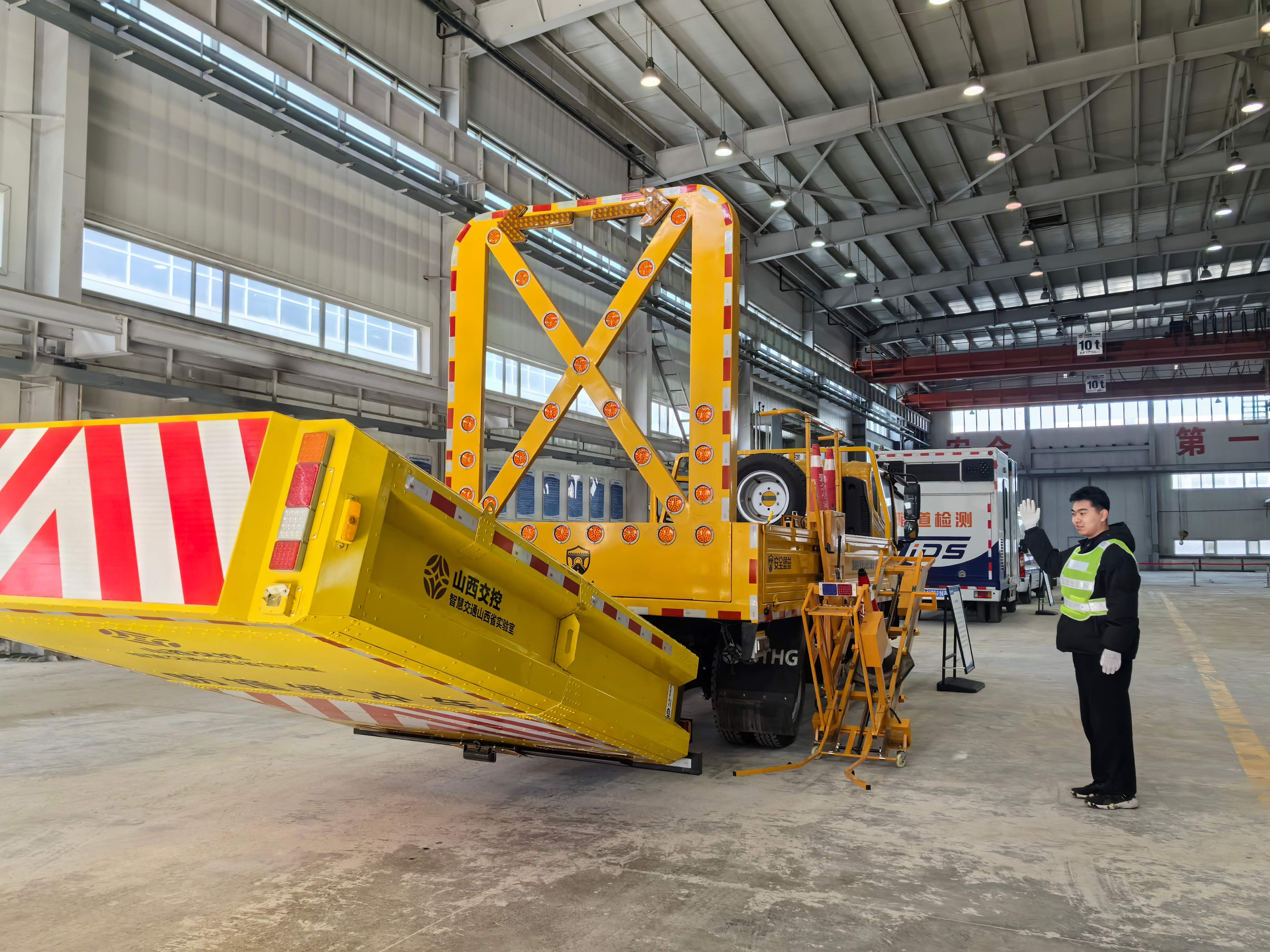 山西交通科学研究院集团有限公司博士后科研工作站科研人员研发的120K防撞缓冲车。人民网记者 武笑摄