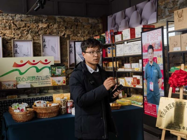王浩在介绍直播助农的开展过程。中青报·中青网记者 邢婷/摄