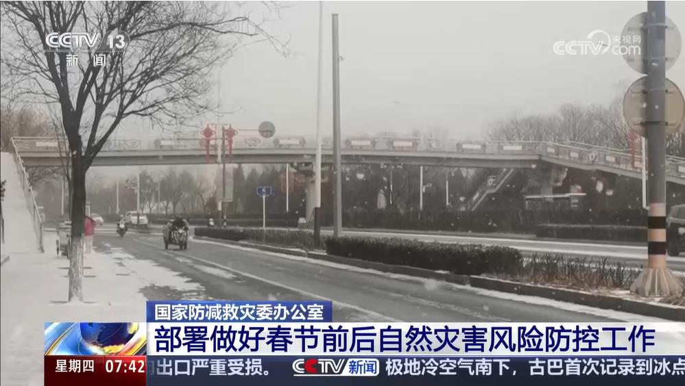 央视网消息:2月4日,国家防灾减灾救灾委员会办公室部署各地各部门做好春节前后自然灾害风险防控工作,确保人民群众平安过节。