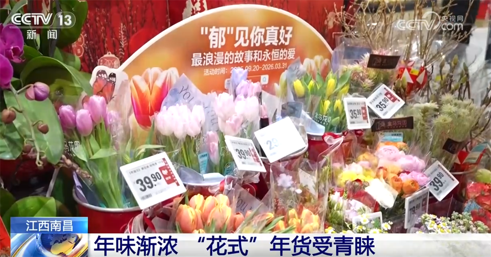 传统年货市场红火热闹,新型年货同样人气爆棚。在南昌这家大型超市,低糖年货礼盒、寓意美好的年宵花等新式品类整齐上架,满足市民多样化、个性化的采购需求。