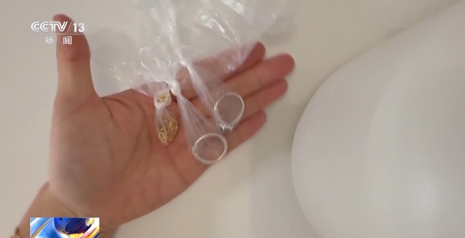 最后,还有一些零碎的小首饰或者小物件,巧用一次性手套,打好结,放入行李箱网格内,好找、不占地儿。