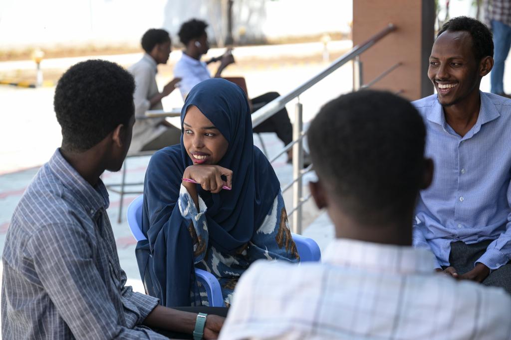 1月11日,在索马里首都摩加迪沙的索马里国立大学,学生们在校园里交谈。新华社记者杨光摄