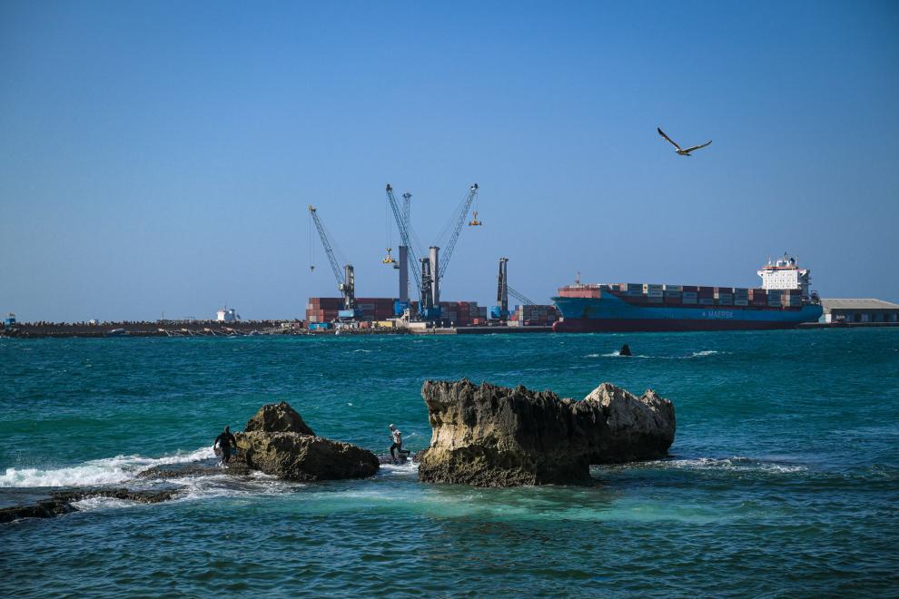 1月11日,在索马里首都摩加迪沙,货船停靠在摩加迪沙港。新华社记者杨光摄