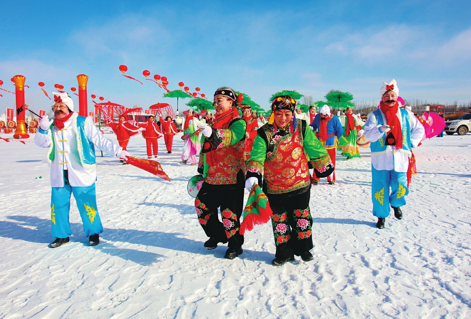 曼园冰雪节活动现场,群众表演喜庆氛围浓厚。