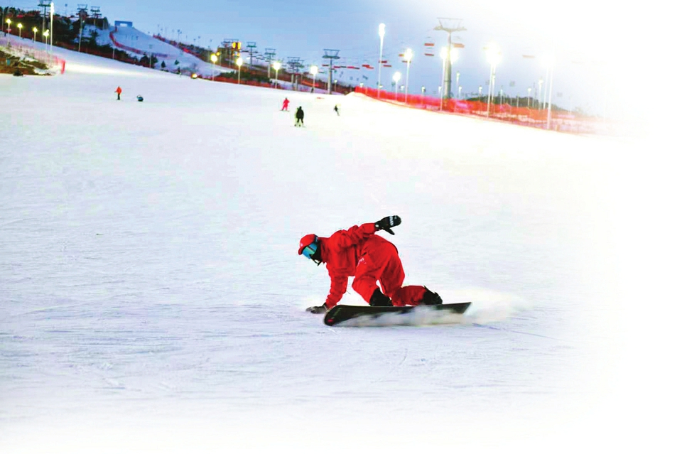 大同万龙白登山国际滑雪场雪道上冰雪爱好者的潇洒身姿。