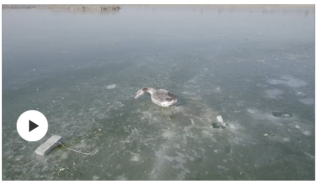2月2日,世界湿地日,衡水湖畔,一只曾被困于冰面、奄奄一息的灰雁,在众人注视下重返蓝天。