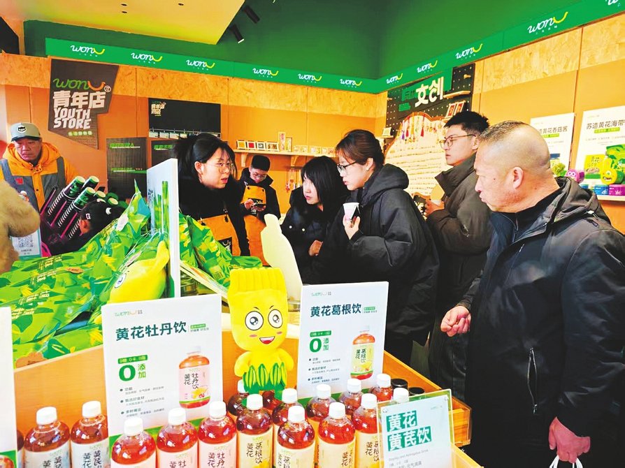 2月8日,记者走进这家由10多名返乡青年运营的黄花店。黄花功能饮、黄花酱、黄花益生菌、黄花冰面包、黄花文创雪糕、“忘忧宝”等映入眼帘,从味蕾体验到视觉享受,从日常食用到文化收藏,琳琅满目的产品全方位展现了大同黄花全产业链的丰富内涵,让人目不暇接。