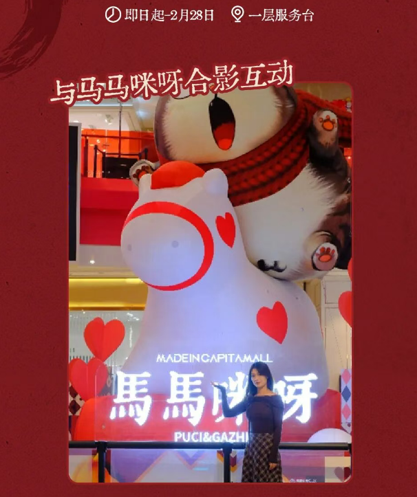 除了丰富的积分福利,凯德MALL・大兴还为市民备好了普惠好礼。此前开展的消费满额刮刮卡活动已顺利结束,参与即有机会赢取黄金饰品、定制周边等新春好礼,好礼数量有限,均已派发完毕。凯德MALL・大兴还在一层服务台放置了可爱的“马马咪呀”,和它拍照打卡并分享就能领取一份定制台历。活动截止至2月28日,快来和“马马咪呀”邂逅打卡,把新春的美好定格下来吧!