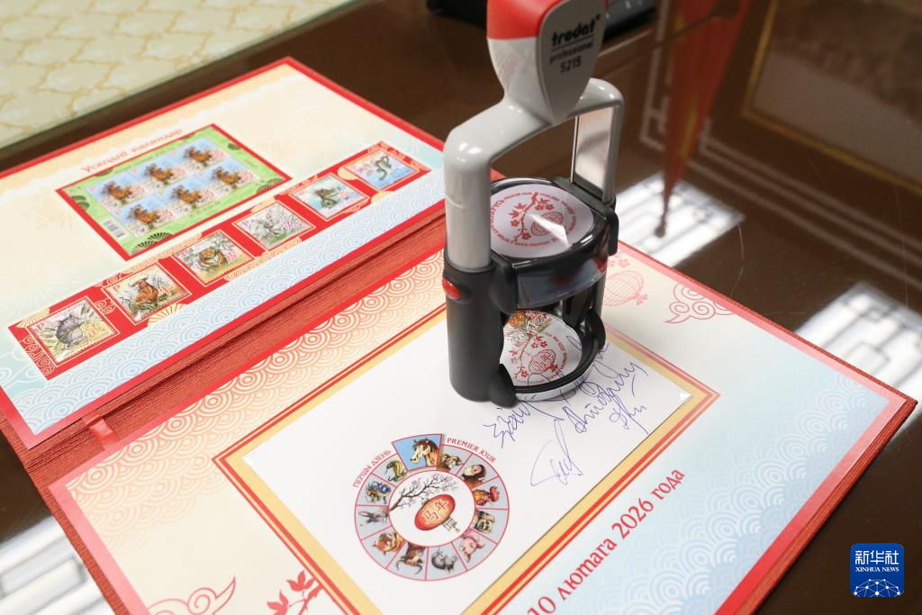 这是2月10日在白俄罗斯明斯克拍摄的白俄罗斯《东方历法:马年》邮票和首日封。