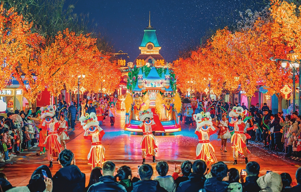 夜幕降临后,园区的欢乐氛围将迎来新的高潮。“新春大巡游”从欧洲街欢乐启程,萌趣十足的十二生肖人偶全新登场,和流光溢彩的主题花车一起缓缓前行,演员们载歌载舞,与游客热情互动,将新春的欢乐气氛传遍园区每个角落。随后,“新春喜乐会”主题晚会将在梦幻广场热闹启幕,台上缤纷演艺轮番上演,台下游客围着篝火牵手狂欢,在欢声笑语中乐享阖家团圆的温馨时光。