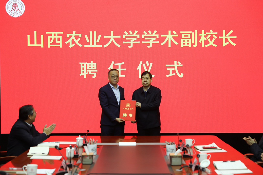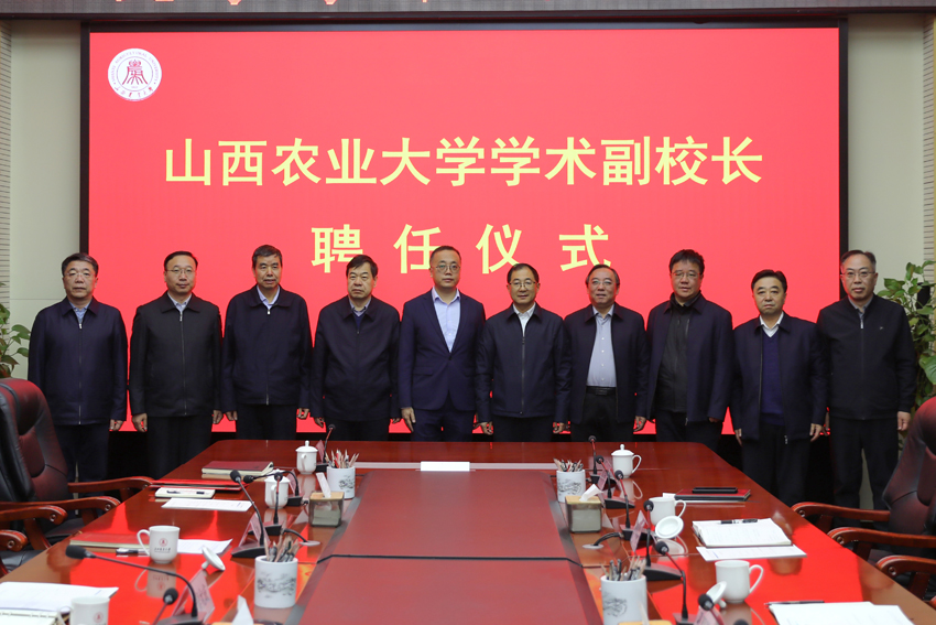 仪式上,张强为贾汉忠颁发山西农业大学(山西省农科院)学术副校长聘书。仪式结束后,全体校领导班子成员与贾汉忠同志合影留念。