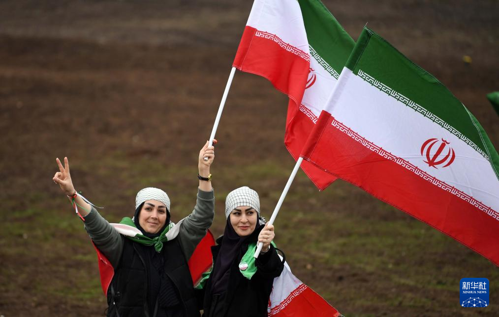 2月11日,在伊朗首都德黑兰,民众在阿扎迪广场参加纪念伊朗伊斯兰革命胜利47周年集会。